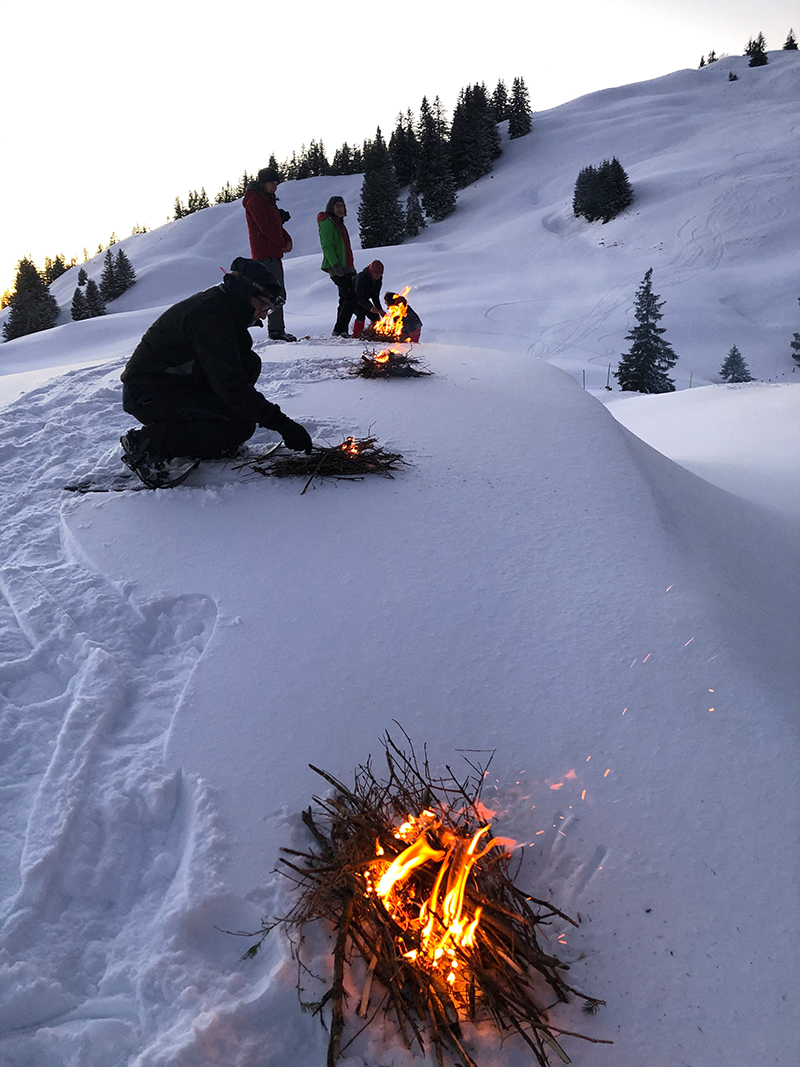 Gruppenanlass im Schnee und Feuer